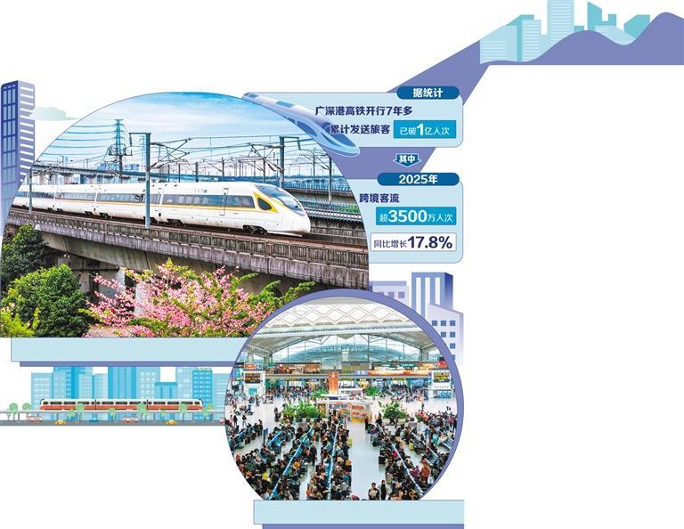 据统计,广深港高铁开行7年多,累计发送旅客已破1亿人次,其中,2025年跨境客流超3500万人次,同比增长17.8%。