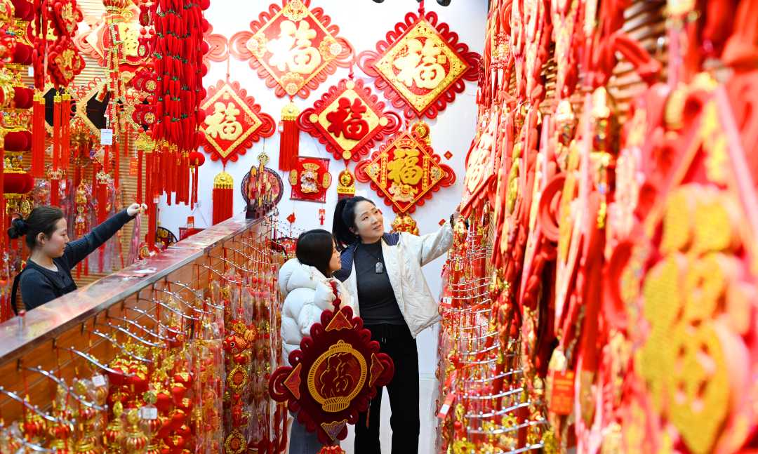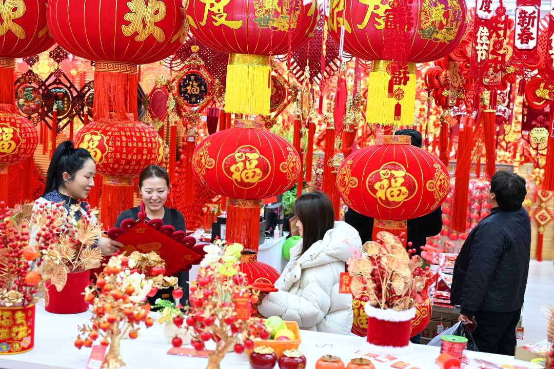 春节将至,年味渐浓。河北省保定市白沟新城处处洋溢着喜庆氛围,民俗用品、服饰饰品、家居生活用品琳琅满目。连日来,白沟新城各大商超纷纷启动了“春节模式”,年节用品储备充足,货架满满当当,价格合理,吸引顾客前来选购。