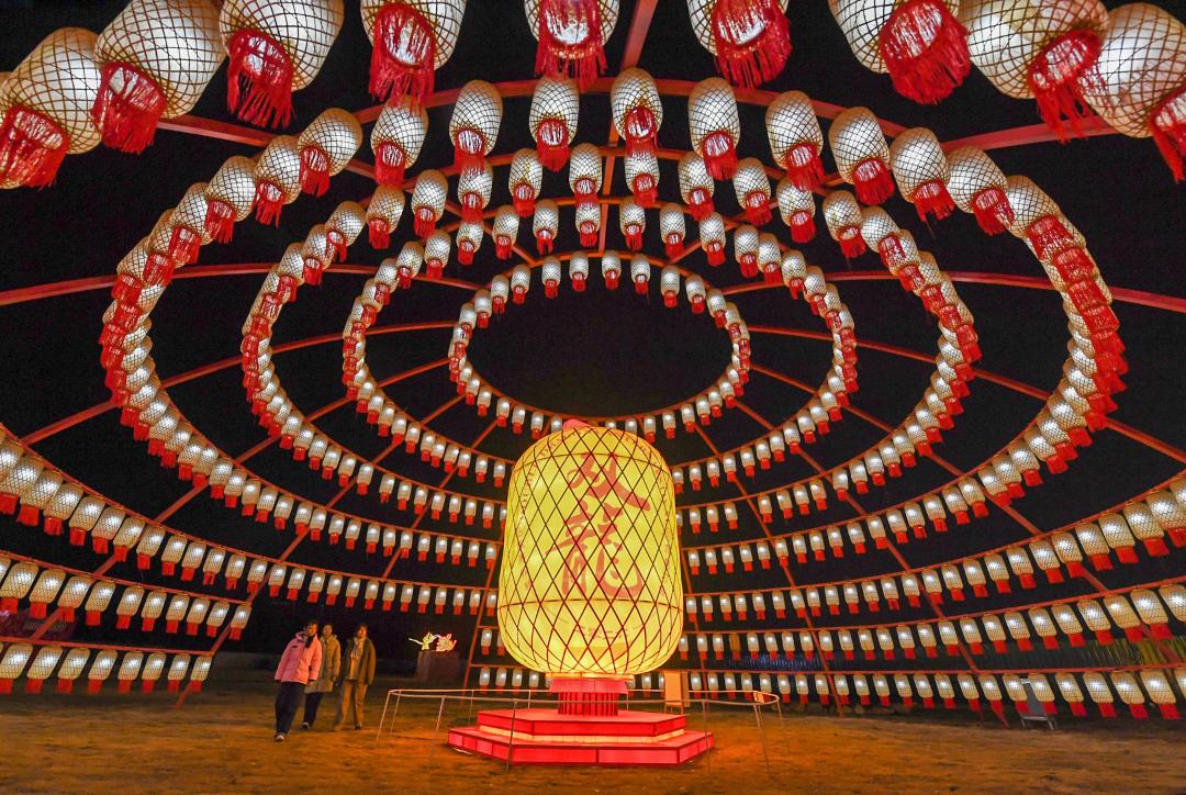 2月10日,浙江省金华市婺城区罗店镇,游人在金华山双龙灯会上观赏游玩。灯会历时39天,融合自贡非遗彩灯技艺与金华本地文化,为市民游客打造“有灯、有戏、有文化、有体验”的新春文旅盛宴。