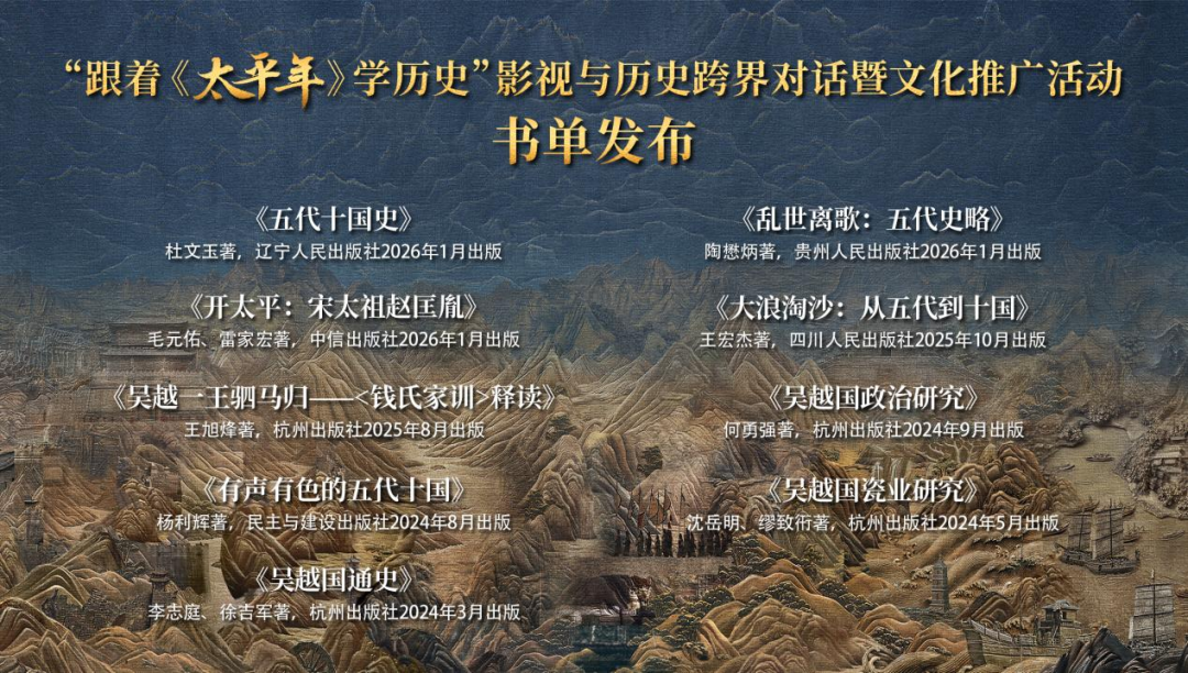 此次发布的九部推荐书单,如同九把通往历史深处的钥匙,体系化地覆盖了五代十国史研究的多个维度。书单既包含通史性著作,如杜文玉所著《五代十国史》、陶懋炳所著《乱世离歌:五代史略》,为读者构建宏观历史框架;也聚焦关键人物,如毛元佑、雷家宏合著的《开太平:宋太祖赵匡胤》,深度剖析时代雄主;更有对吴越国的专题研究,包括何勇强《吴越国政治研究》、李志庭与徐吉军合著《吴越国通史》,以及沈岳明、缪致衎合著的《吴越国瓷业研究》,从政治、经济、物质文化等多角度切入。尤为引人注目的是王旭烽所著《吴越一王驷马归—<钱氏家训>释读》,将家风传承与历史抉择相联系;而杨利辉所著《有声有色的五代十国》、王宏杰所著《大浪淘沙:从五代到十国》则以生动笔触,力图还原那段复杂历史的鲜活面貌。这份书单的发布,不仅是精品历史读物推荐,更是向全社会倡议“观好剧、读好书、修好史”,共同推动历史文化知识的普及与传承。(经济日报记者 姜天骄)