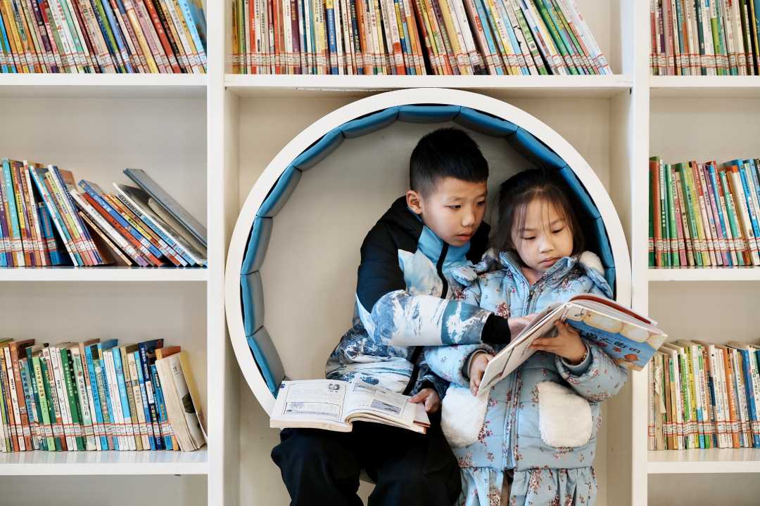 江西省宜春市上高县图书馆阅读书籍。