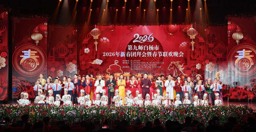 新疆生产建设兵团第九师白杨市2026年新春团拜会暨春节联欢晚会日前举办。此次晚会通过歌舞、戏曲、相声、情景朗诵等多种艺术形式,生动展现了兵团九师白杨市干部职工群众团结奋进的精神风貌,为观众奉上了一场精彩纷呈、内涵丰富的新春文化大餐。