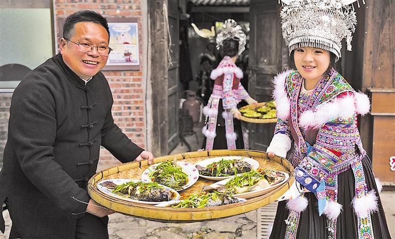 2月16日,广西柳州市融水苗族自治县易扶移民搬迁社区梦呜苗寨,村民身着盛装准备年夜饭。 龙 涛摄(中经视觉)