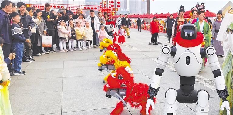 2月14日,四川省成都市天府国际会议中心“天府之檐”,机器人表演吸引了众多游客。 本报记者 覃皓珺摄