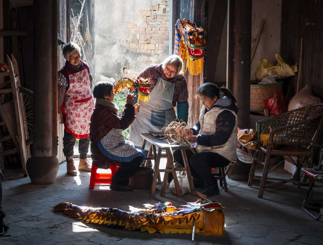 2月16日,安徽省绩溪县上庄镇手龙制作老艺人在扎制手龙。