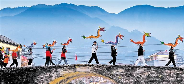 2月16日,安徽省宣城市绩溪县上庄镇,国家级非遗手龙舞巡游热闹上演。