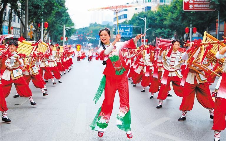 2月17日,江西省赣州市章贡区长征广场的踩街民俗文化活动为春节增添浓浓的年味。