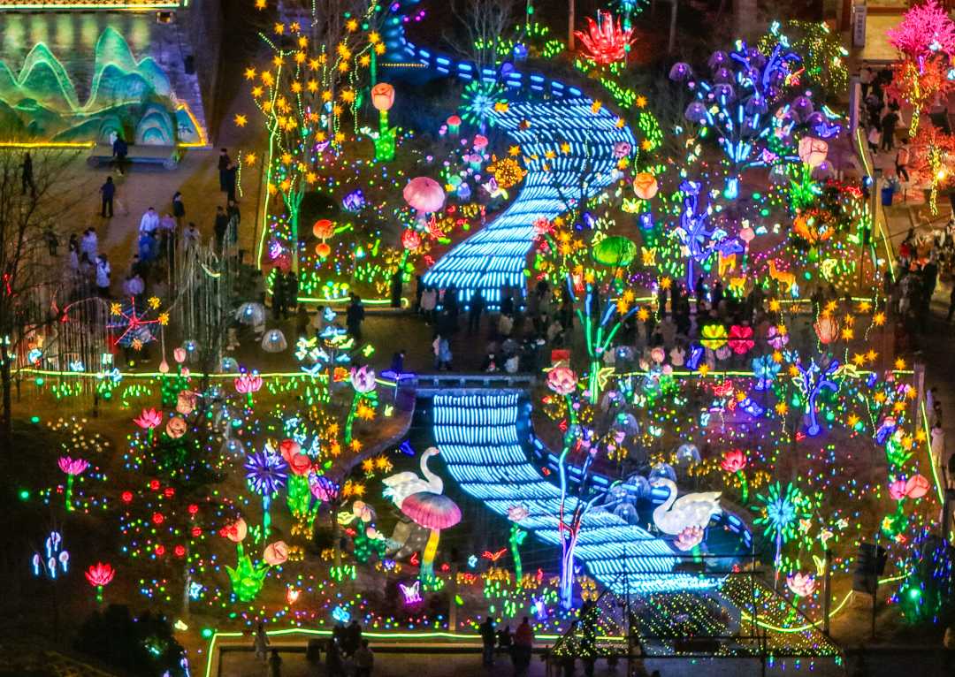 2月17日,游客在山西省运城市河东池盐文化博览园内观赏“盬盐灯会”。