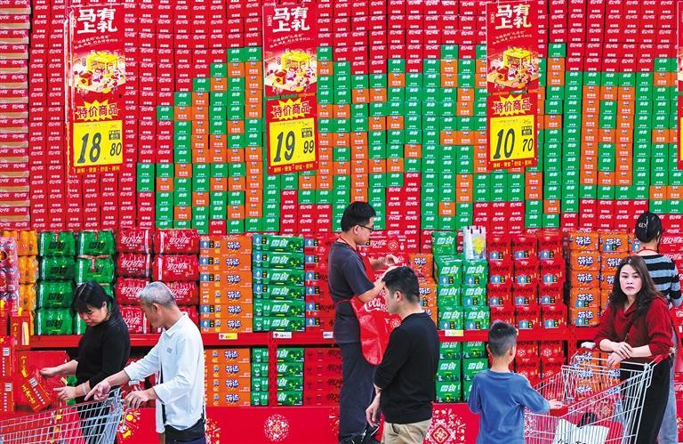 2月15日,甘肃省兰州市城关区一大型商超,市民在选购生鲜食品。为保障春节市场供应,各地加大货源储备,确保粮油、果蔬、肉类等量足价稳,节日市场红火有序。