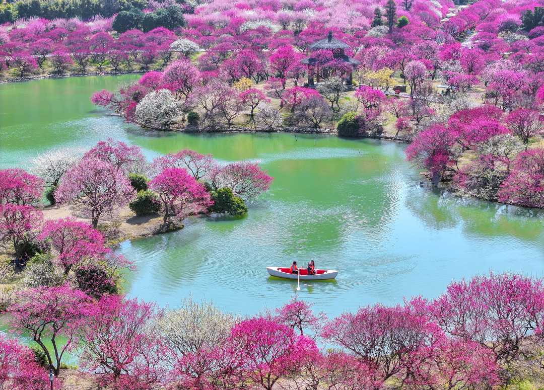 2月20日,浙江省湖州市长兴县龙之梦东方盆景园内梅花绽放、春意盎然,游客前来赏花游玩,欢度春节假日。