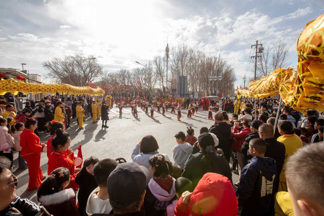 2月22日,新疆库车市老城街区举行民俗巡游活动,演员为市民和游客表演腰鼓。