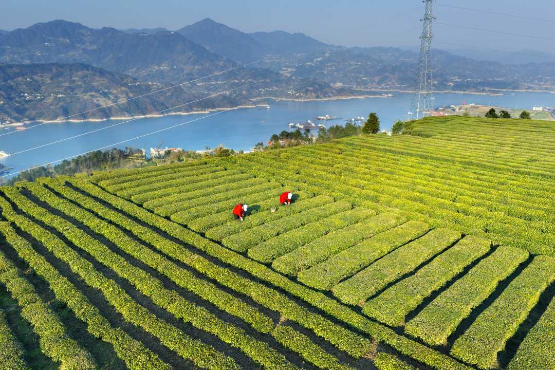 2月21日,三峡库区湖北省宜昌市秭归县茅坪镇松树坳村的一片茶园里,茶农正在采摘早茶。当地依托优良的生态环境和独特的峡江气候,建设早茶基地,促进农民增收致富。