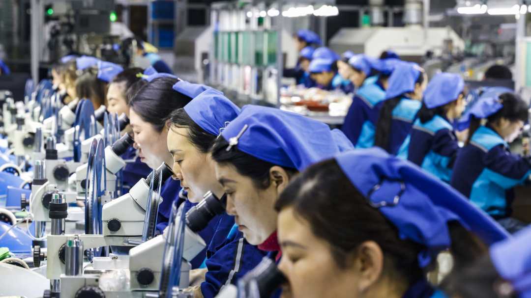 2月24日,位于江苏省宿迁市泗洪经济开发区的庆邦电子元器件(泗洪)有限公司,员工在生产线上赶制电子元器件。