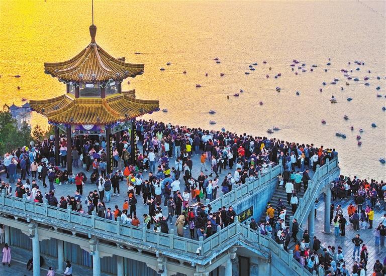 2月20日,江苏省徐州市云龙山观景台,游客共赏落日熔金。高 刚摄(中经视觉)