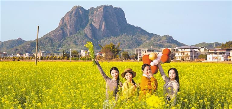 2月18日,广东省梅州市平远县石正镇中东村油菜花迎春绽放,吸引众多游客前来赏花游玩。冯锡权摄(中经视觉)