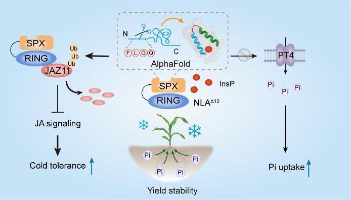 研究团队发现,NLA如同一个精密的“分流阀门”,是整合“冷-磷”协同调控的分子枢纽,使得玉米提高耐冷性的同时,抑制根系对磷的吸收。