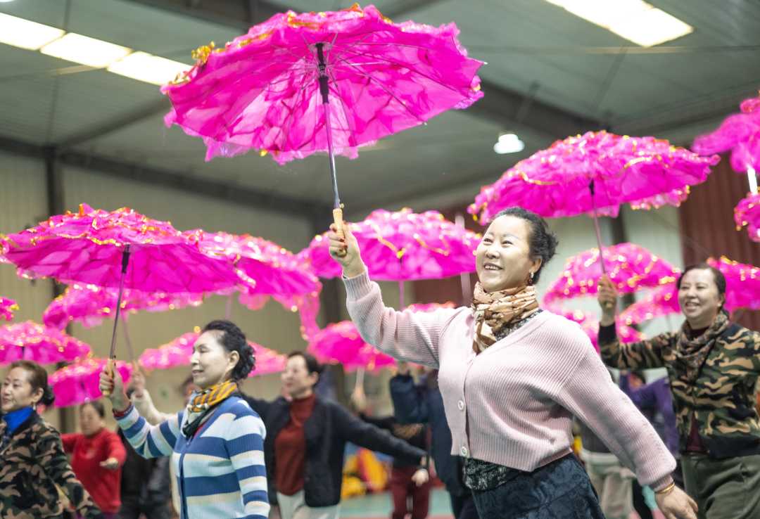 2月25日,新疆昌吉回族自治州昌吉市绿洲路街道,演员在排练社火。