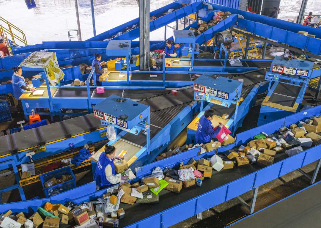 2月26日,安徽省芜湖市繁昌区物流供配服务中心,工作人员在自动化分拣岗位上分拣包裹。