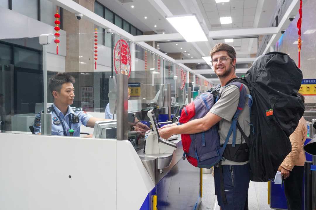 河口边检站移民管理警察为旅客办理入境查验手续。赵国骁摄