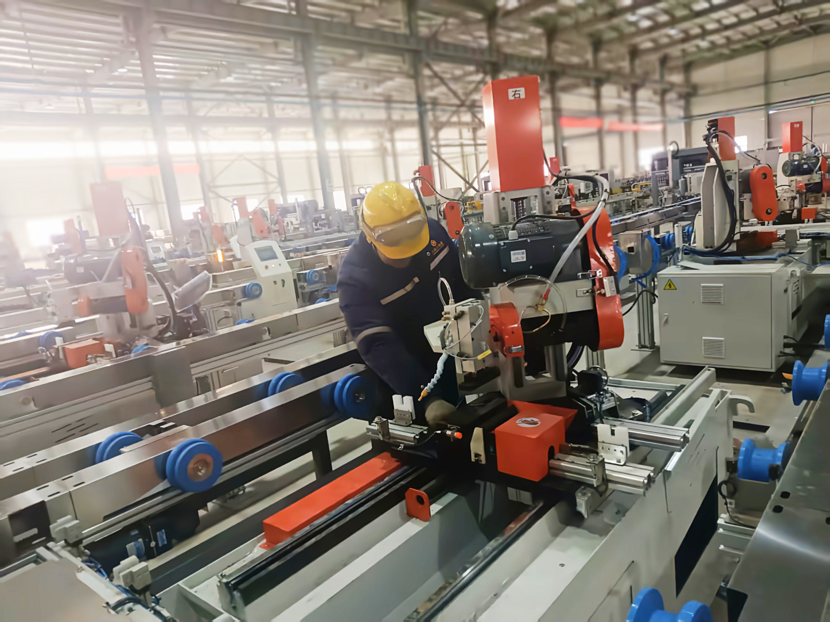 惠新能8GW光伏组件用镀锌铝镁钢边框智能制造项目现场,工人正在进行设备调试。(受访单位供图)