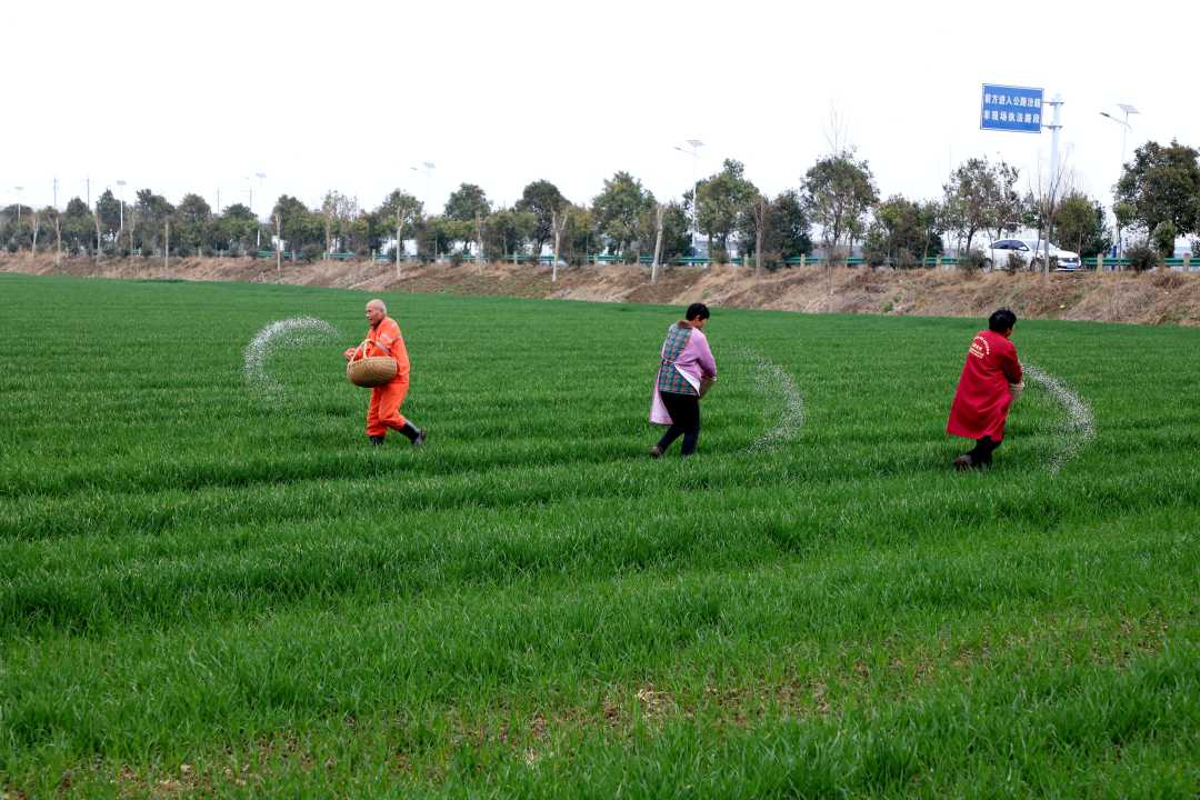 2月28日,安徽省亳州市利辛县中疃镇高皇社区麦田,村民为小麦追施返青肥。随着气温回升,当地积极推进小麦返青肥追施工作,为夏粮丰产筑牢根基。