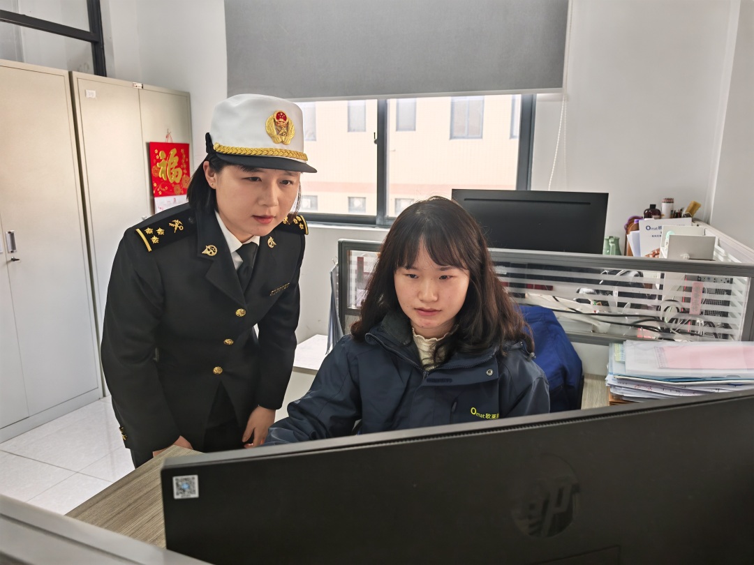 韶关海关关员指导企业开展“自报享惠”申报。