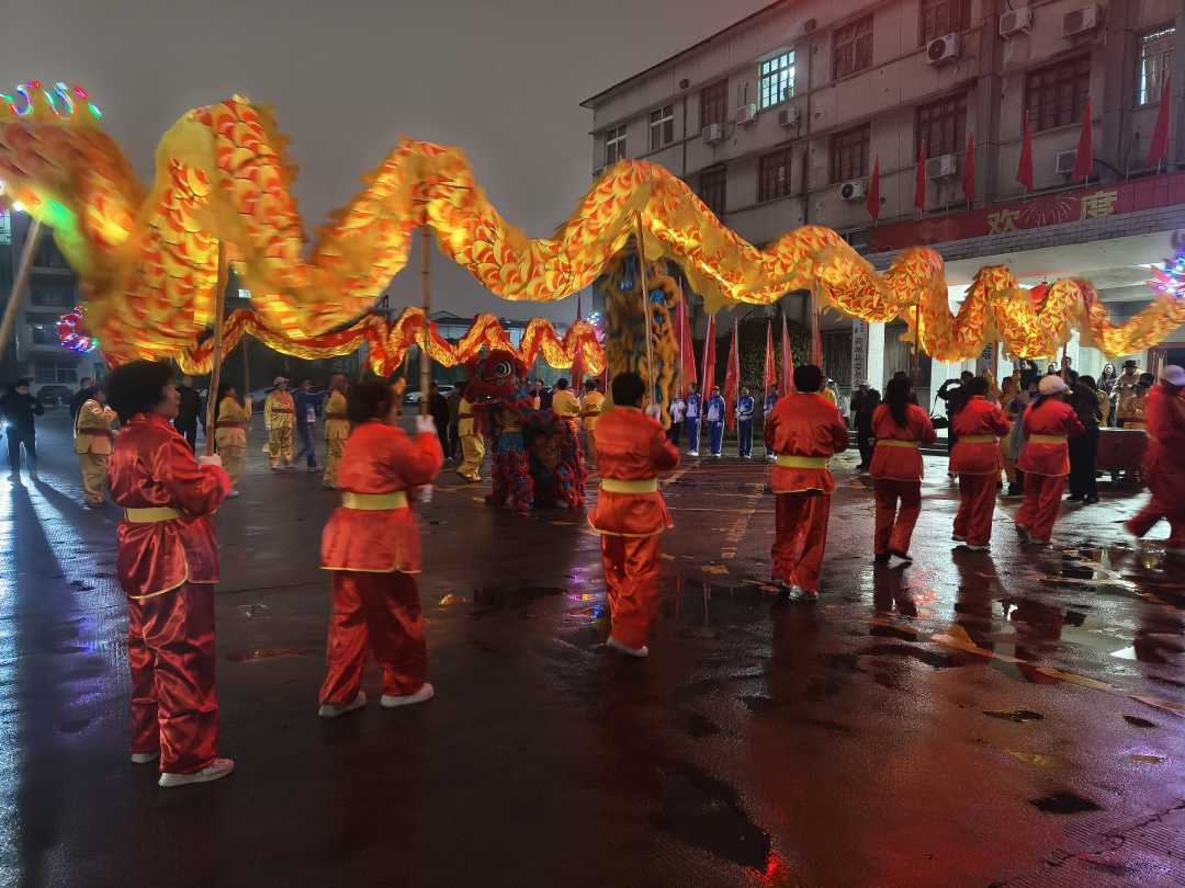 乡村舞台同样精彩纷呈。冯店乡九曲河村锣鼓喧天,舞龙舞狮表演热闹非凡,队员们历时一月的精心排练,赢得乡亲们阵阵喝彩,现场欢声笑语、节日氛围浓厚。达权店镇新店村则在元宵前夕举办专题文艺汇演,现场人头攒动,商城民歌、打花棍、扑蝴蝶、渔鼓等多项非遗节目依次登场,尽显本土文化特色。