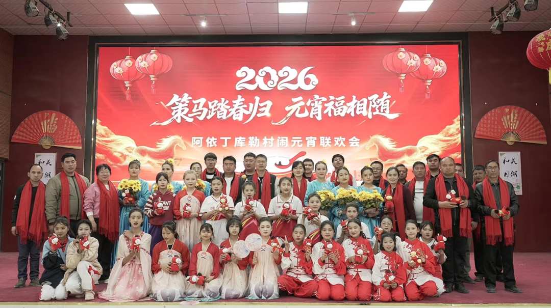 随着四村巡演同步启幕,一场场精彩演出在各村活动轮番上演。在光明村文化大舞台上,阿克兰干村文艺队带来的《灯火里的中国》婉转悠扬,《张灯结彩》喜庆热闹,歌声与舞姿交织,勾勒出新时代乡村的幸福图景;合尼村现场,光明村文艺队的《红袄欢歌庆丰年》《灯笼舞》活力四射,将丰收的喜悦和元宵的喜庆传递给每一位村民;阿依丁库勒村和阿克兰干村的舞台上,合尼村、阿依丁库勒村的文艺队员们依次献上《正月十五闹花灯》《中国人》《幸福中国一起走》等精彩节目,赢得观众阵阵掌声。