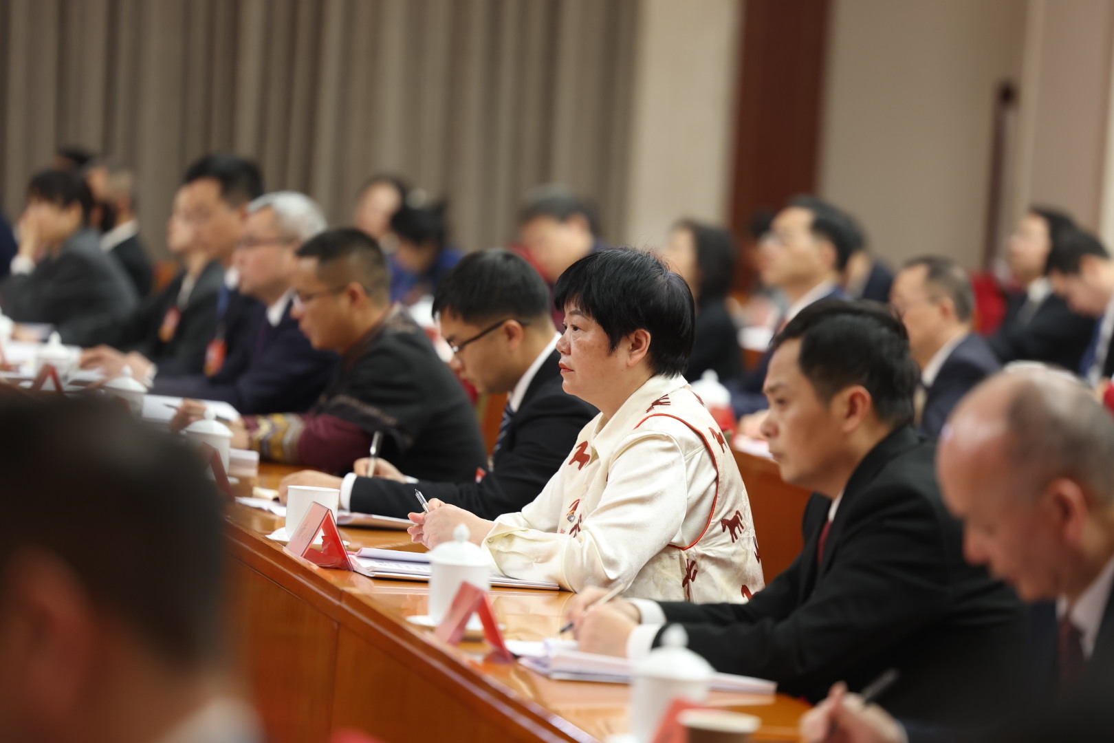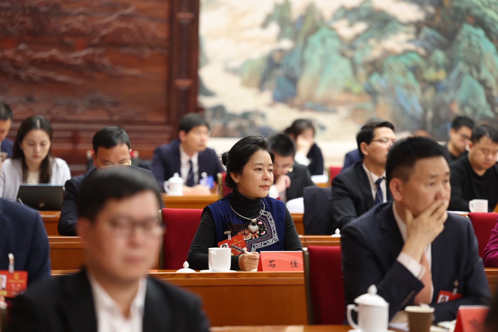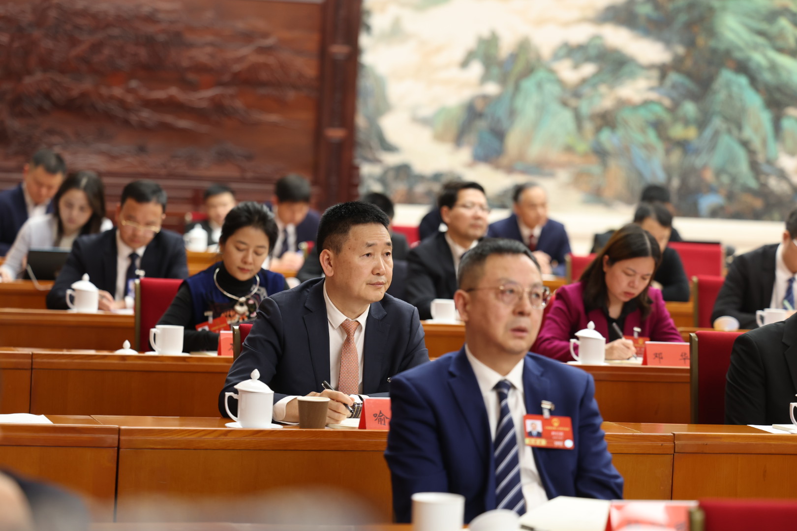 3月5日下午,人大湖南代表团在驻地举行全体会议,审议政府工作报告。这是代表在听取发言。经济日报记者高兴贵摄