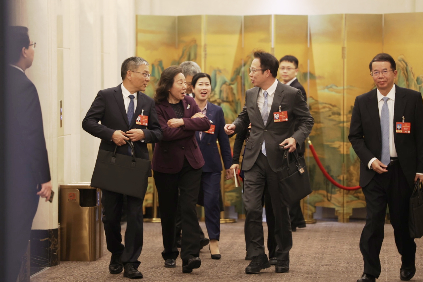 3月5日,人大湖南代表团举行全体会议,审议政府工作报告。会前,代表们边走边议。经济日报记者高兴贵摄