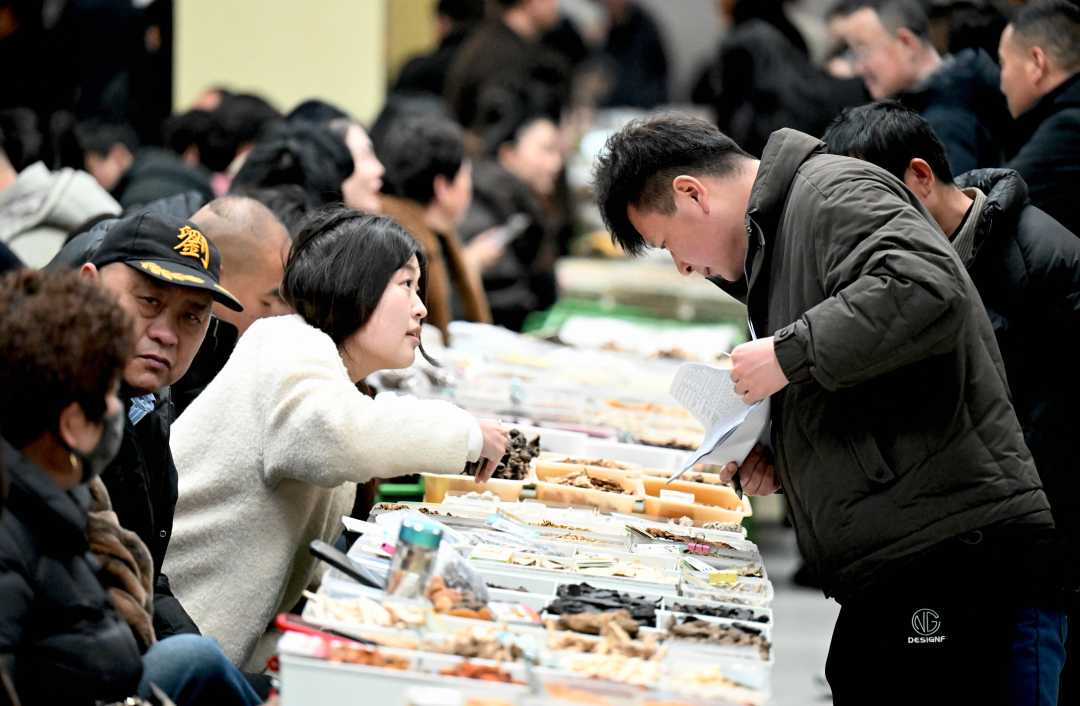 3月6日,药商在安徽省亳州中药材专业市场内选购药材。