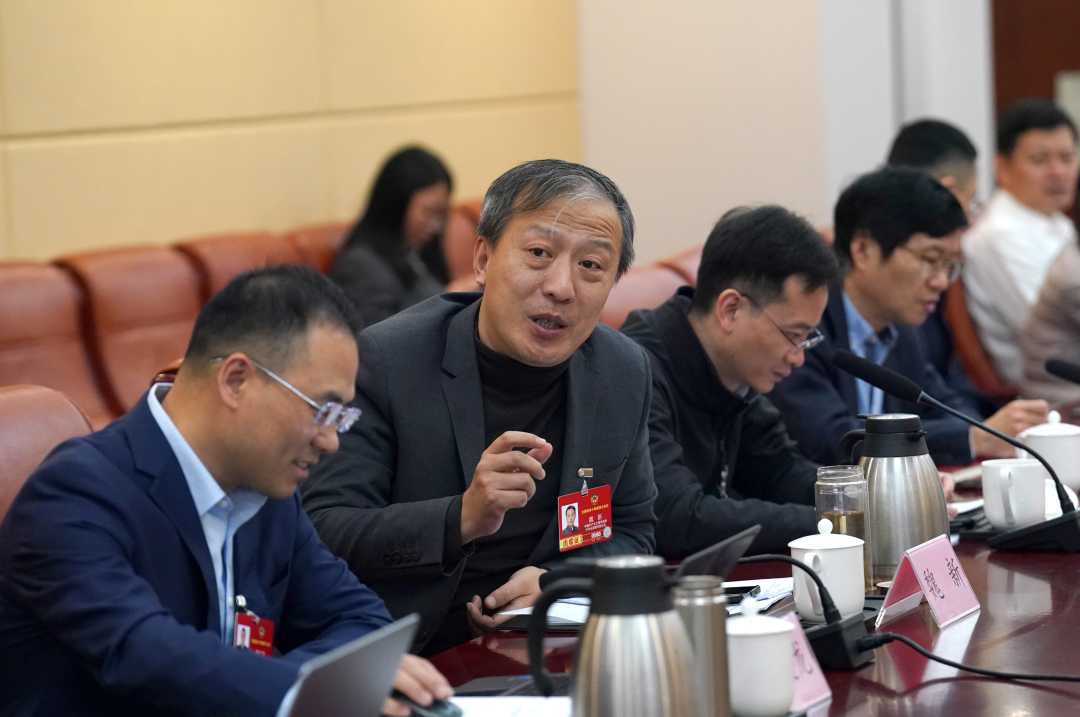 3月7日上午,全国政协十四届四次会议举行小组会议。图为共青团和青联界张坤委员(右一)在发言。经济日报记者赵晶摄