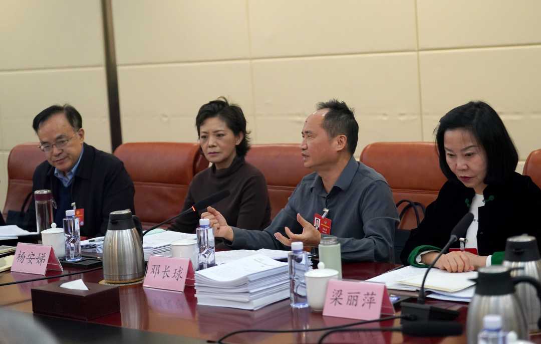 3月7日上午,全国政协十四届四次会议举行小组会议。图为民盟界邓长球委员(右二)在发言。经济日报记者赵晶摄