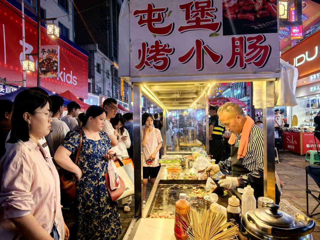 游客在安顺夜市购买烤小肠。安顺融媒供图