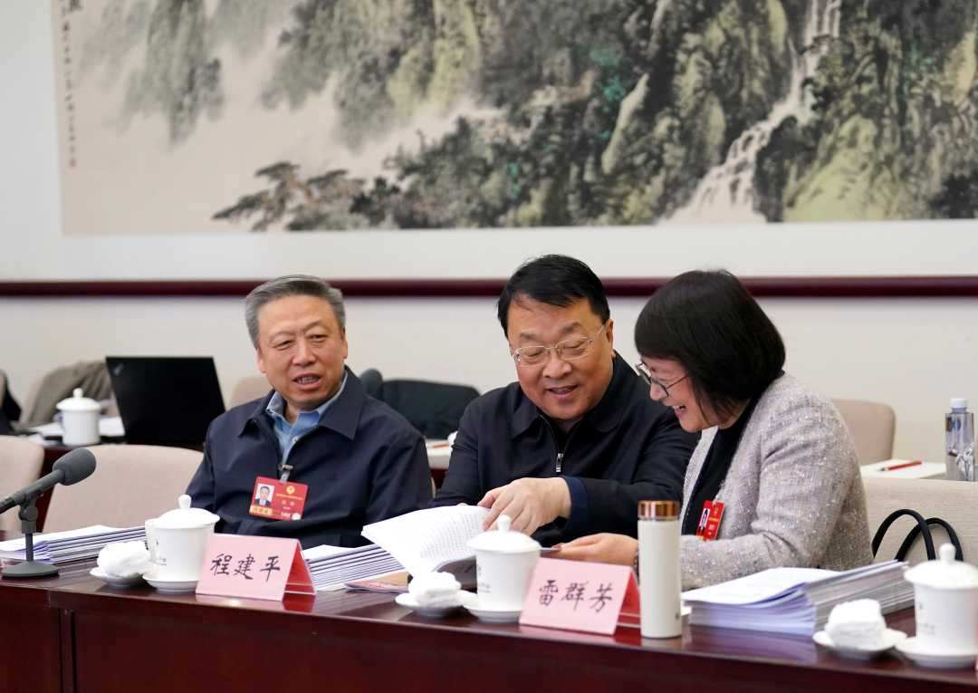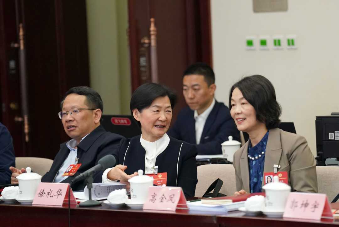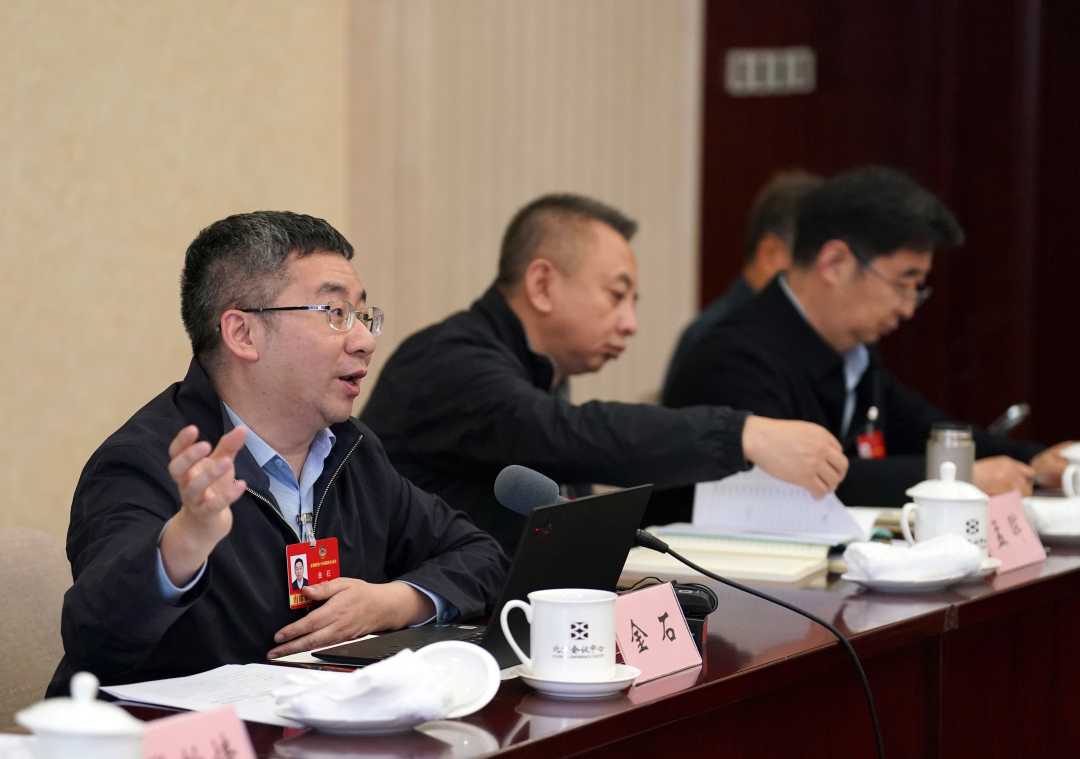 3月10日,全国政协十四届四次会议举行界别协商会议和小组会议。图为教育界王定华委员(左二)在会场交流发言。经济日报记者赵晶摄