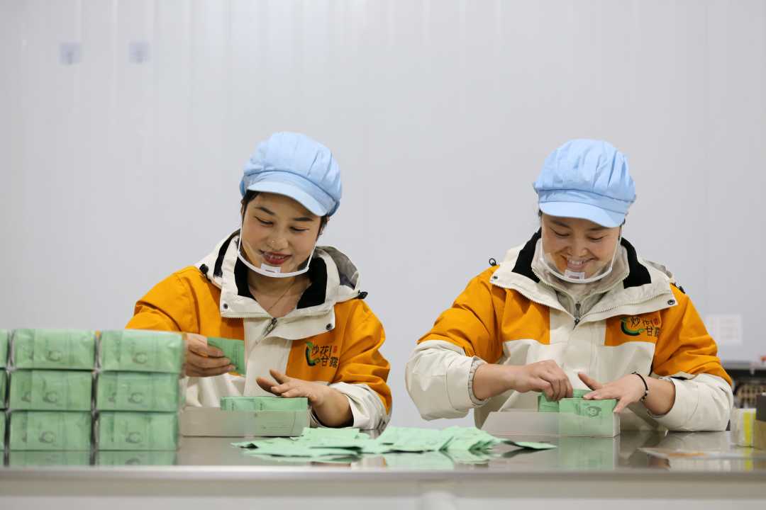 3月10日,位于四川省乐山市犍为县工业园区的四川省炒花甘露茗茶有限公司,员工在生产车间里包装茶叶。