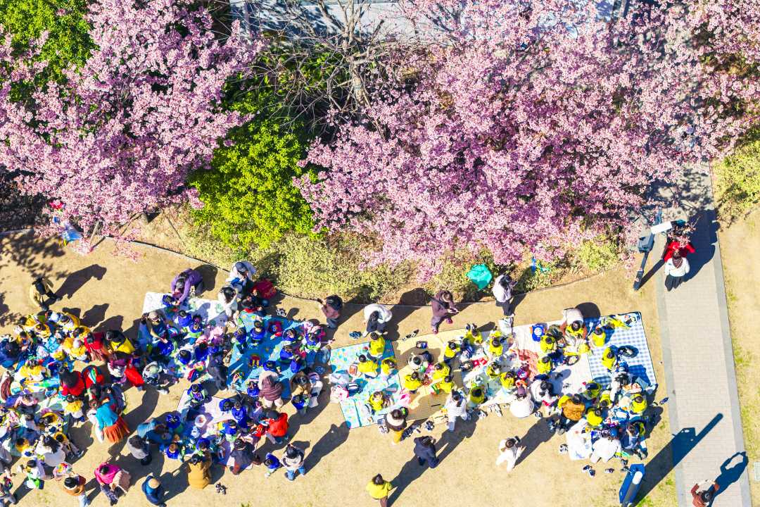 江苏省苏州工业园区锦溪公园观赏早樱,乐享春日美好时光。