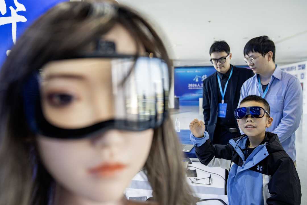3月14日,“金华·金漪湖”2026人工智能产业融合发展大会在浙江省金华市金东区举行,500余位嘉宾聚焦人工智能产业协同发展。通过主旨演讲、圆桌对话、项目路演及场景清单发布等形式,共话产业未来与创新合作。图为观众在体验人工智能产品。