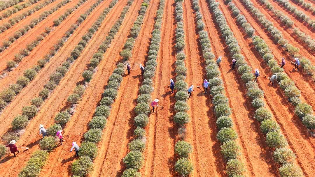 3月17日,江西省吉安市永丰县鹿冈乡鹿冈村,农民在中药材种植基地进行起垄耕作。