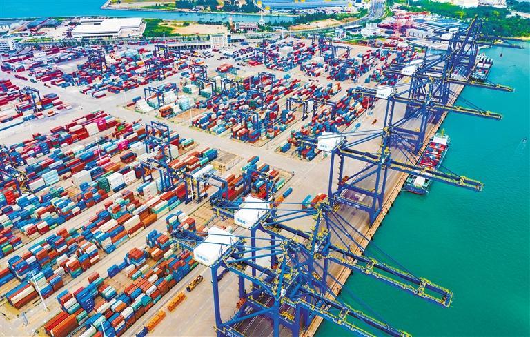 2025年11月14日拍摄的海南省儋州市洋浦国际集装箱码头。据统计,封关以来,海南货物贸易进出口654.9亿元,同比增长29.1%,其中今年1月、2月的外贸规模均创历史同期最高。