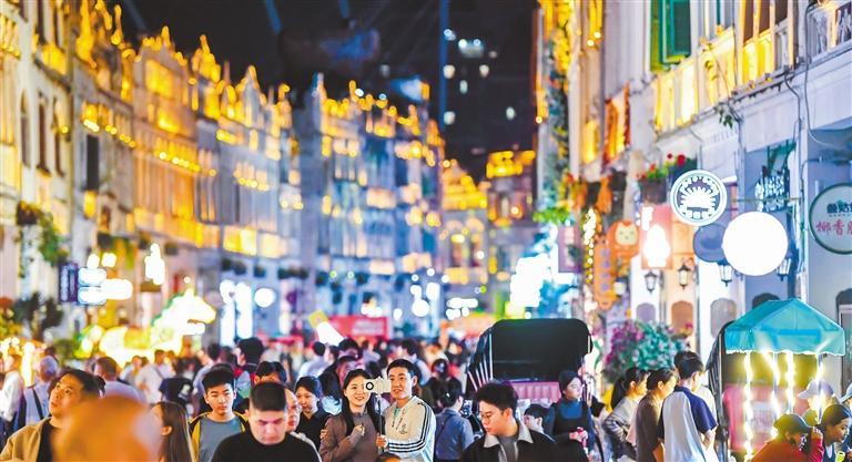 2月19日,游客在海口市骑楼老街游玩。今年春节假期,海南全省接待游客1232.05万人次,实现游客总花费183.66亿元,与去年春节假期相比分别增长28.9%、30.7%。苏弼坤摄(中经视觉)