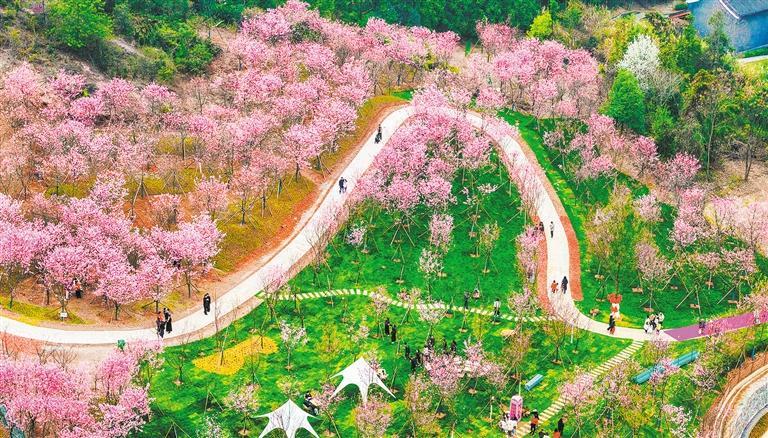 3月3日,重庆市垫江县牡丹樱花世界景区,60万株郁金香汇成花海,吸引游客前来打卡游玩。