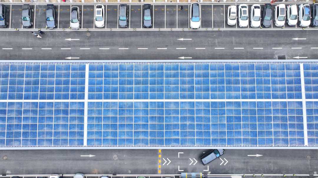 该绿色智能停车场集“光储充换”等多功能于一体,可通过人脸识别、反向寻车等智慧功能停取车辆。