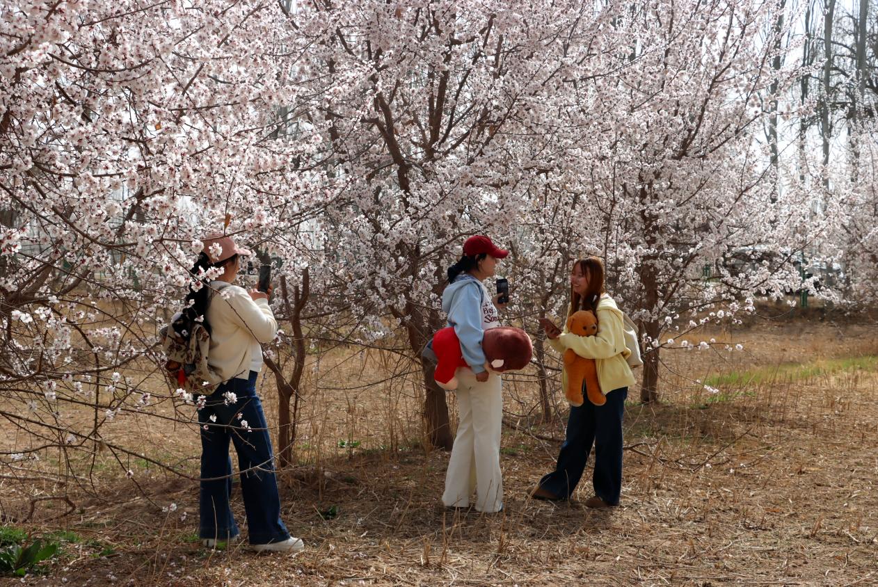游客在黄杏之乡景区观赏杏花。王涵摄