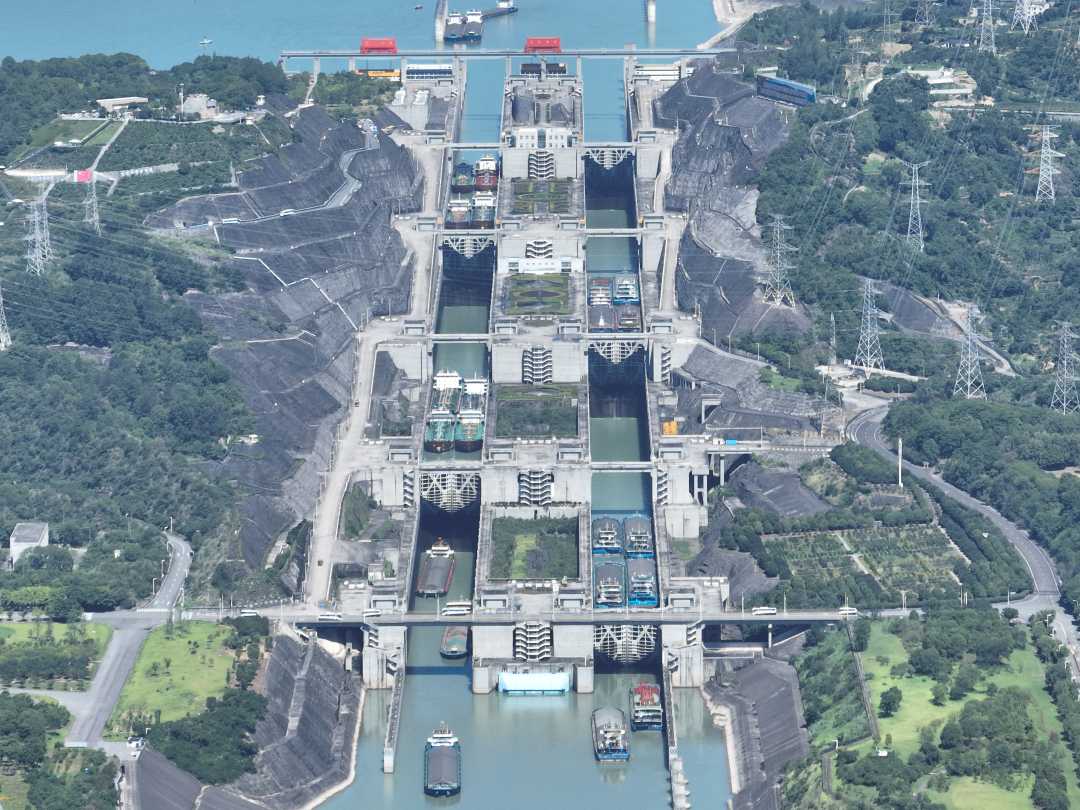船舶通过三峡双线五级船闸。李光强摄