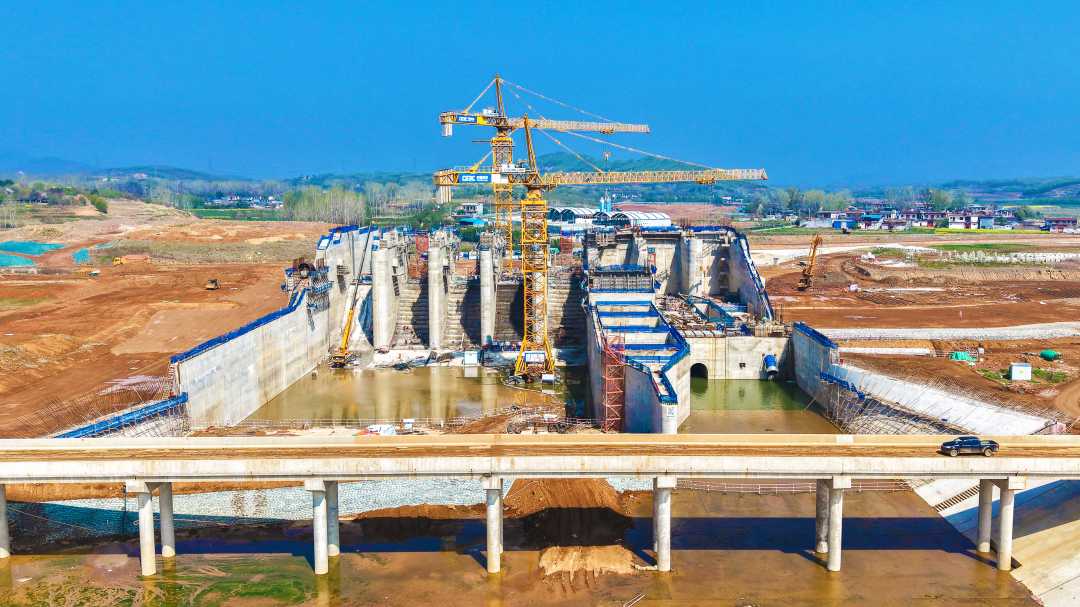 4月1日,河南省南阳市方城县,汉山水库工程施工正酣。