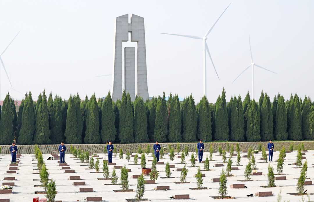 清明节,多地开展祭扫活动,缅怀革命先烈。4月5日,山东省临沂市郯城烈士陵园,消防救援人员为烈士默哀。