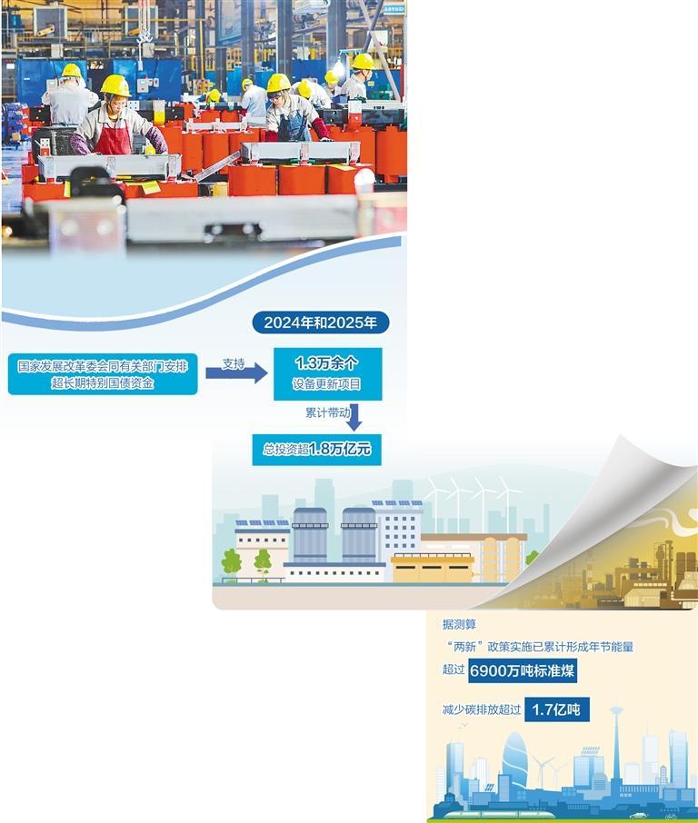节能装备更新改造正迎来市场窗口期。国家发展改革委资源节约和环境保护司副司长李泰介绍,2024年和2025年,国家发展改革委会同有关部门安排超长期特别国债资金支持1.3万余个设备更新项目,累计带动总投资超1.8万亿元。据测算,“两新”政策实施已累计形成年节能量超过6900万吨标准煤,减少碳排放超过1.7亿吨。