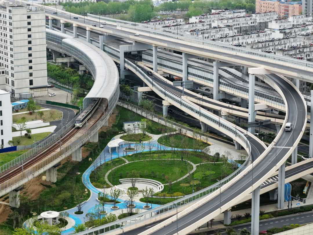 4月8日,安徽省合肥市文忠路高架桥下,高架和轨道交通合围的区域被改造成为口袋公园,成为市民新的休闲空间。