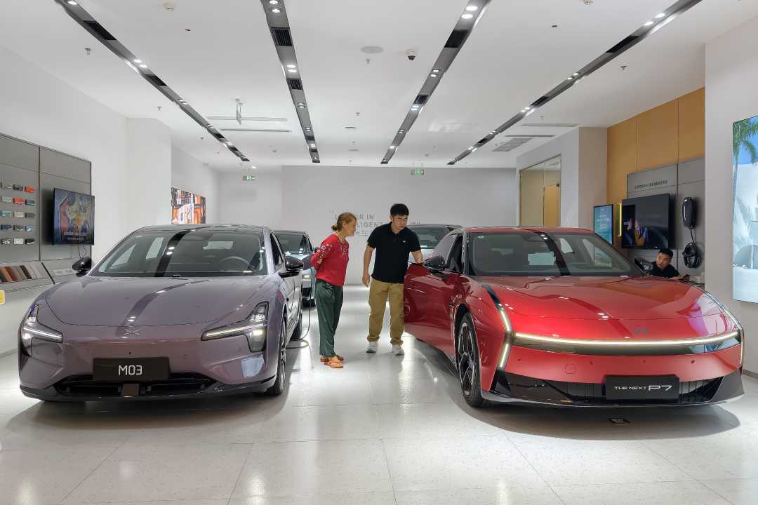4月14日,福建省福州市仓山区一大型商业购物中心,消费者在选购新能源汽车。